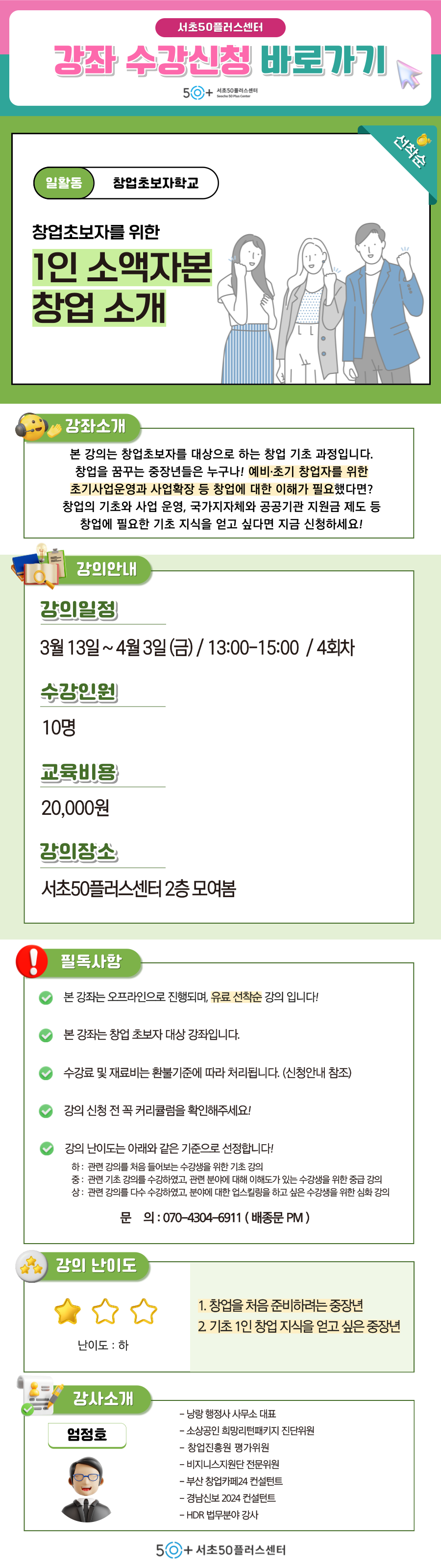 [서초][창업초보자학교] 창업 초보자를 위한 1인 소액자본 창업 소개