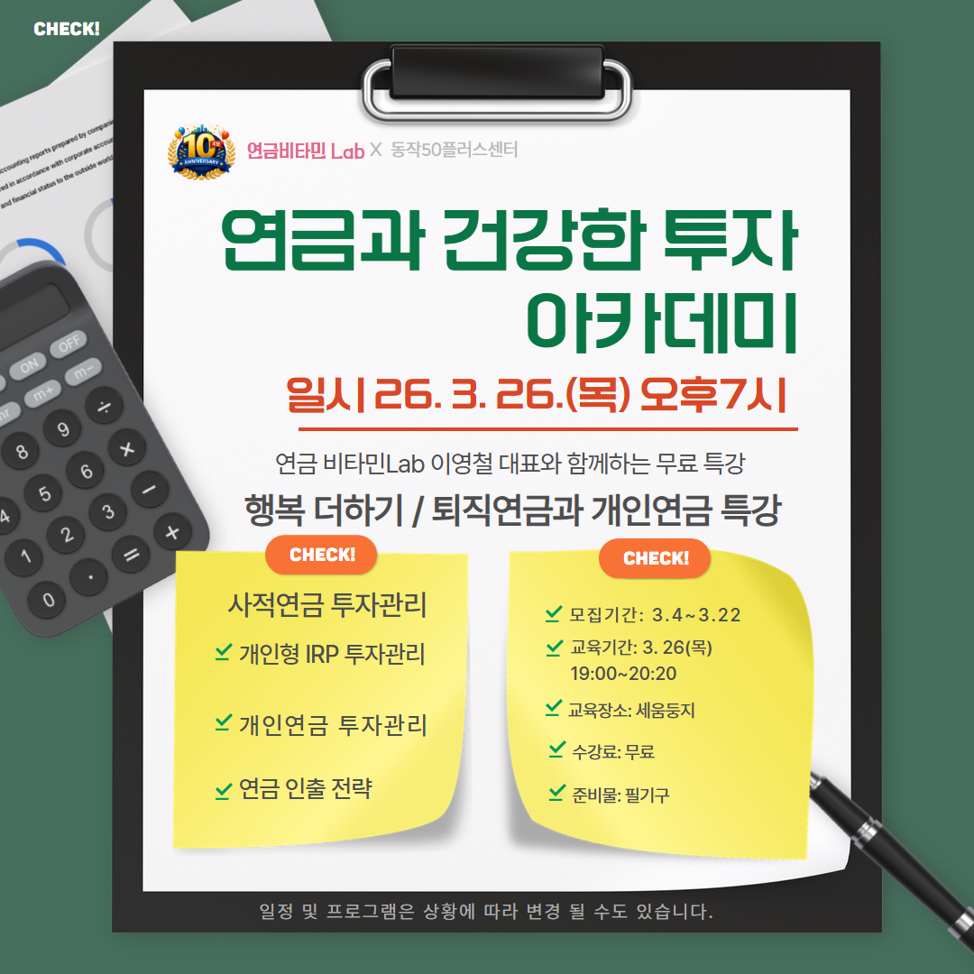 [동작]연금과 건강한 투자 아카데미_사적연금 투자관리마감 D-18