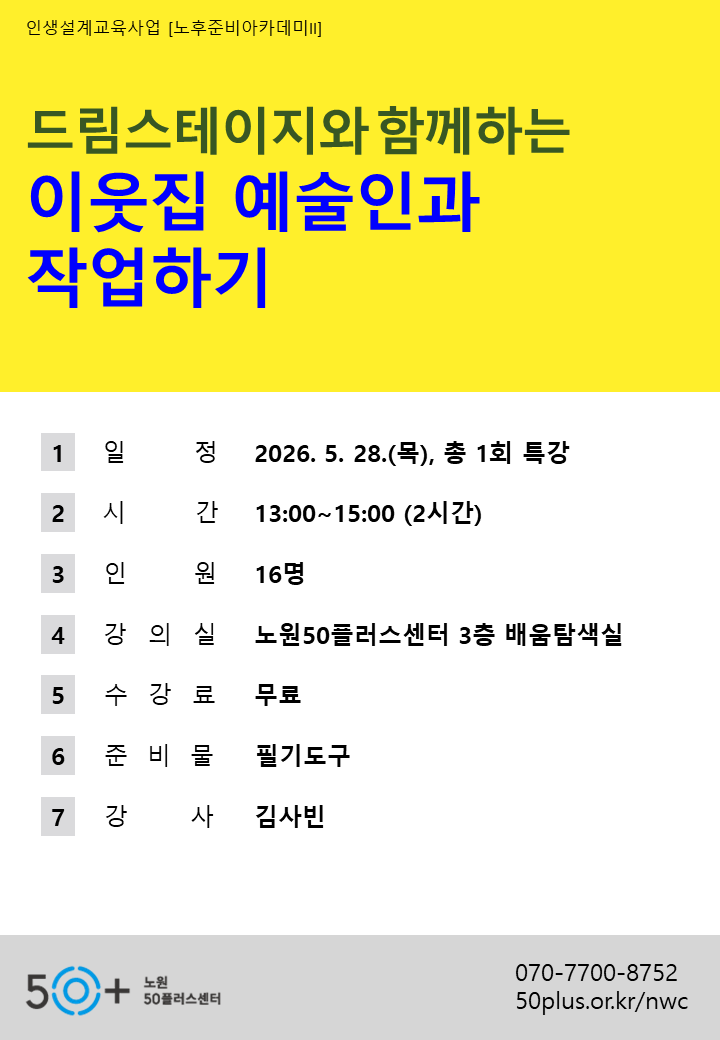 [노원][인큐품앗이][드림스테이지] 이웃집 예술인과 작업하기마감 D-19