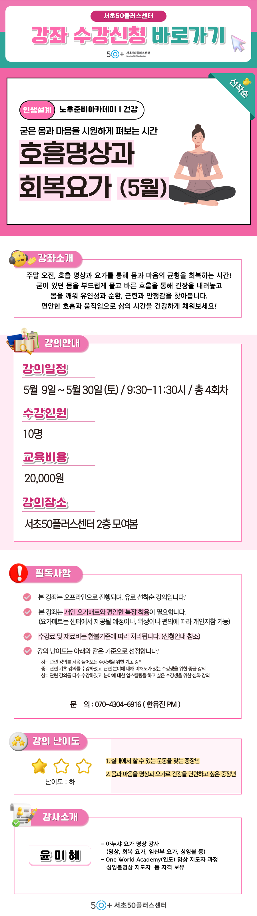 [서초][건강] 굳은 몸과 마음을 펴보는 시간 '호흡명상과 회복요가' (5월)마감 D-21