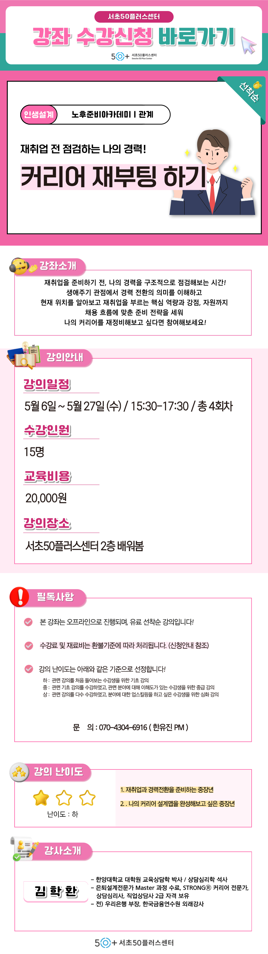 [서초][관계] 재취업 전 점검하는 나의 경력! '내 커리어 재부팅 하기'마감 D-17