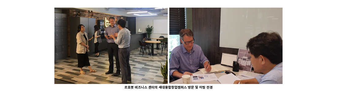 서울에서 접한 또 다른 연령 친화적 이니셔티브는 르호봇 비즈니스 센터에 위치한 세대융합 창업 캠퍼스였다. 르호봇 비즈니스 인큐베이터 박광회 회장이 시설 투어를 직접해주셨다. 겉으로 봤을 때는 자유로운 근무 공간, 공유 시설이 있는 예상가능한 일반적인 스타트업 허브의 모습이었다. 그러나 세대융합 창업 캠퍼스가 있는 두 개 층은 사뭇 분위기가 달랐다. 6~7천만원의 종잣돈을 받으려면(훌륭한 스타트업 아이디어는 당연하고), 창업팀은 반드시 39세 이상과 39세 미만의 참여자를 각각 한명 이상씩 포함하여 구성해야 한다. 세대융합 창업 캠퍼스에서 최초로 선정 된 22개팀은 성장 전략 및 벤처캐피털 사업발표(pitch)로 끝나는 7개월간의 액셀러레이션 프로그램(acceleration programme)을 이제 막 이수했다고 한다. 현재 르호봇은 차기 세대융합 창업팀 지원서를 면면히 살피는 중이다.