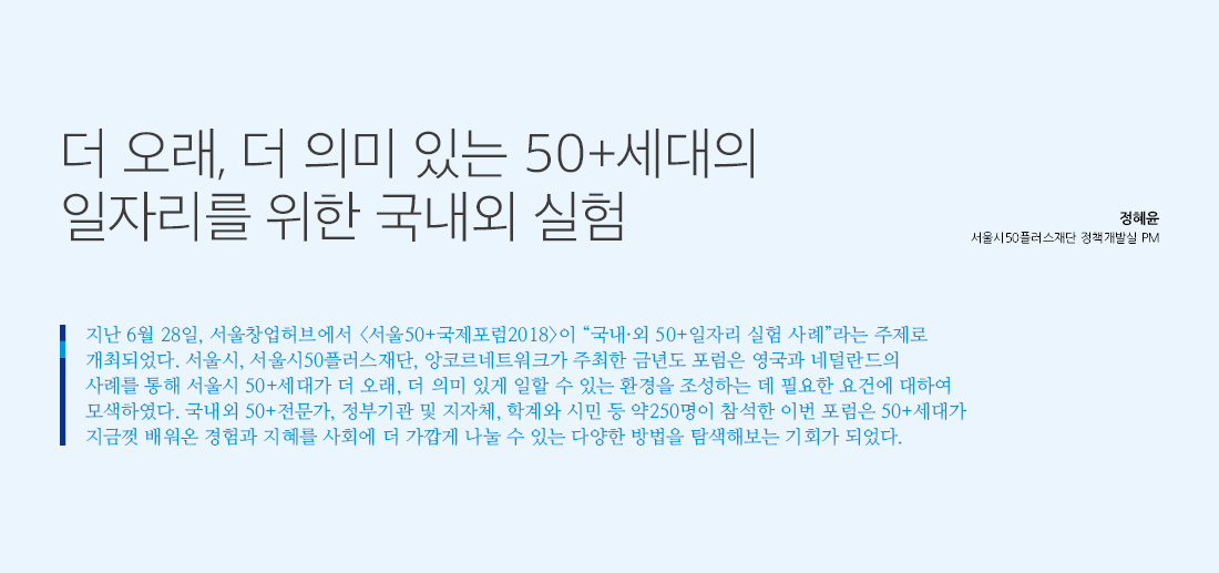 <서울50+국제포럼2018: 국내·50+일자리 실험 사례>
