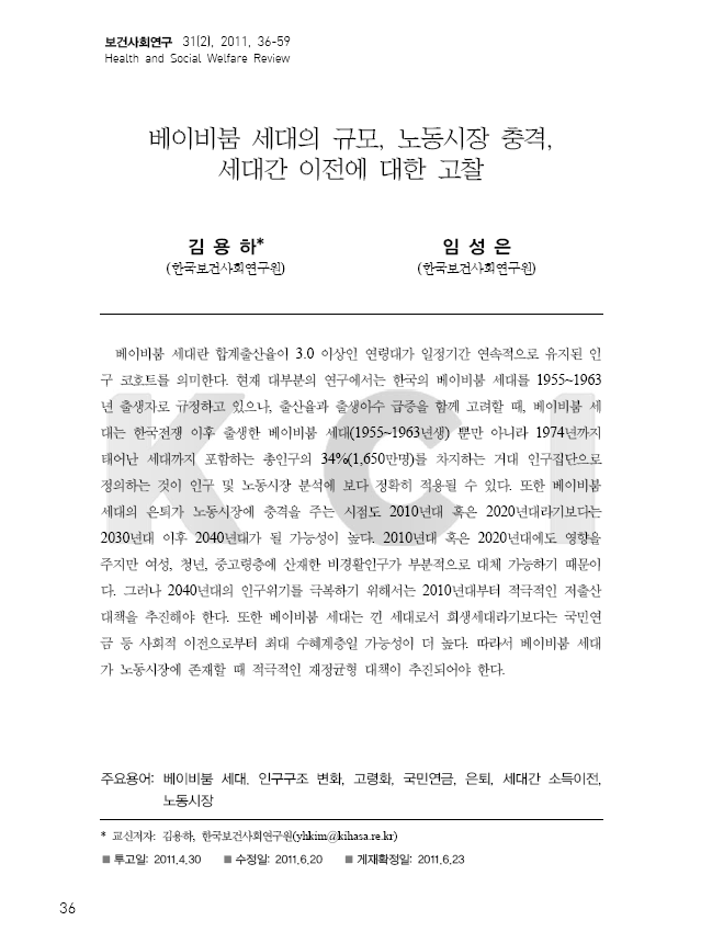 베이비붐 세대의 규모, 노동시장 충격, 세대간 이전에 대한 고찰