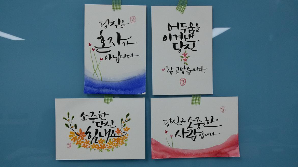 캘리그래피로 담아 엽서로 전달하는 사업입니다.
